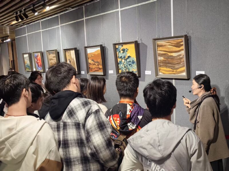 在讲解员的引导下,师生们有序驻足观赏,认真聆听每一件作品的创作背景、工艺技法与文化寓意。李砚祖先生的作品兼具艺术性与思想性,其笔下的山水花鸟栩栩如生,釉色搭配精妙绝伦,既有对传统陶瓷工艺的坚守传承,又融入了当代审美与时代精神,让师生们直观感受到“一抔泥土经烈火淬炼而成瑰宝”的匠心历程。