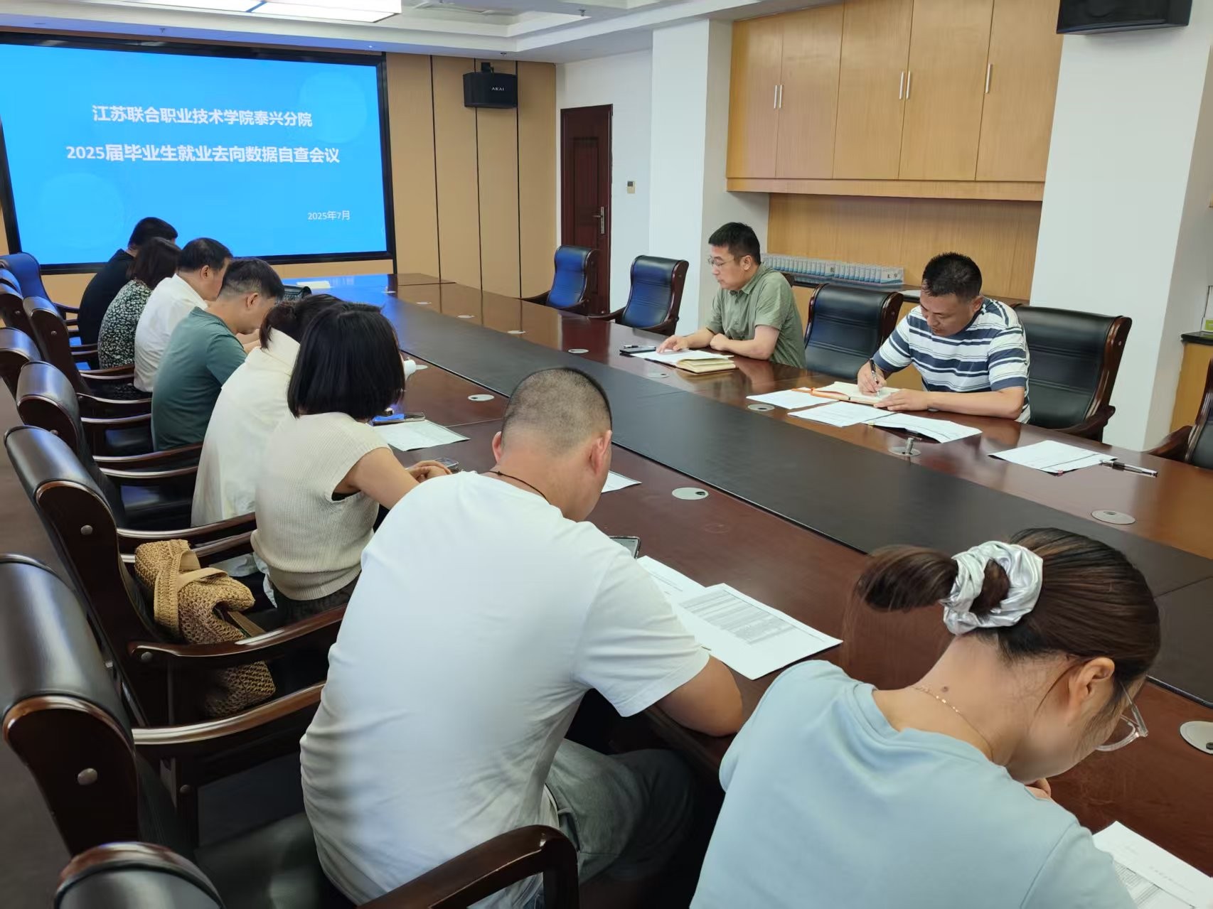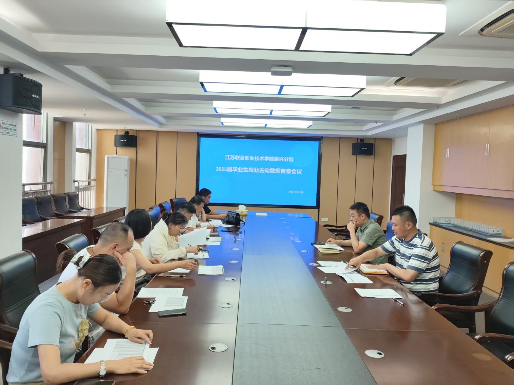 2025年7月19日上午9时,我校2025年毕业生就业去向数据自查会议在图文信息综合大楼903会议室顺利召开。学校副校长苏辉、学生管理服务中心主任施文龙、副主任何勇,各系部学工主任及2025届五年高职毕业班班主任悉数参会,会议聚焦毕业生就业数据真实性核查,为后续就业工作规范化开展奠定基础。