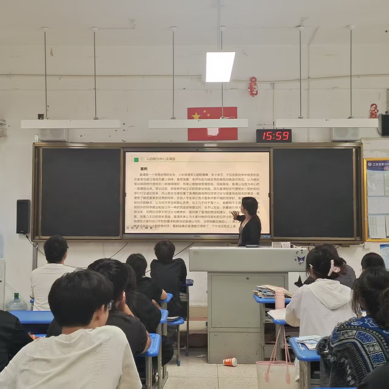 “青少年自我意识发展的偏差及调适” 环节,班会结合王倩、袁清、童学等典型案例,剖析了自我矛盾、自我否定、以自我为中心、自我膨胀、自我萎缩、自我苛求等常见偏差,并给出具体调适方法。“自信训练法”“一个思考” 等活动,让同学们在实践中学习直面不足、树立自信、换位思考。