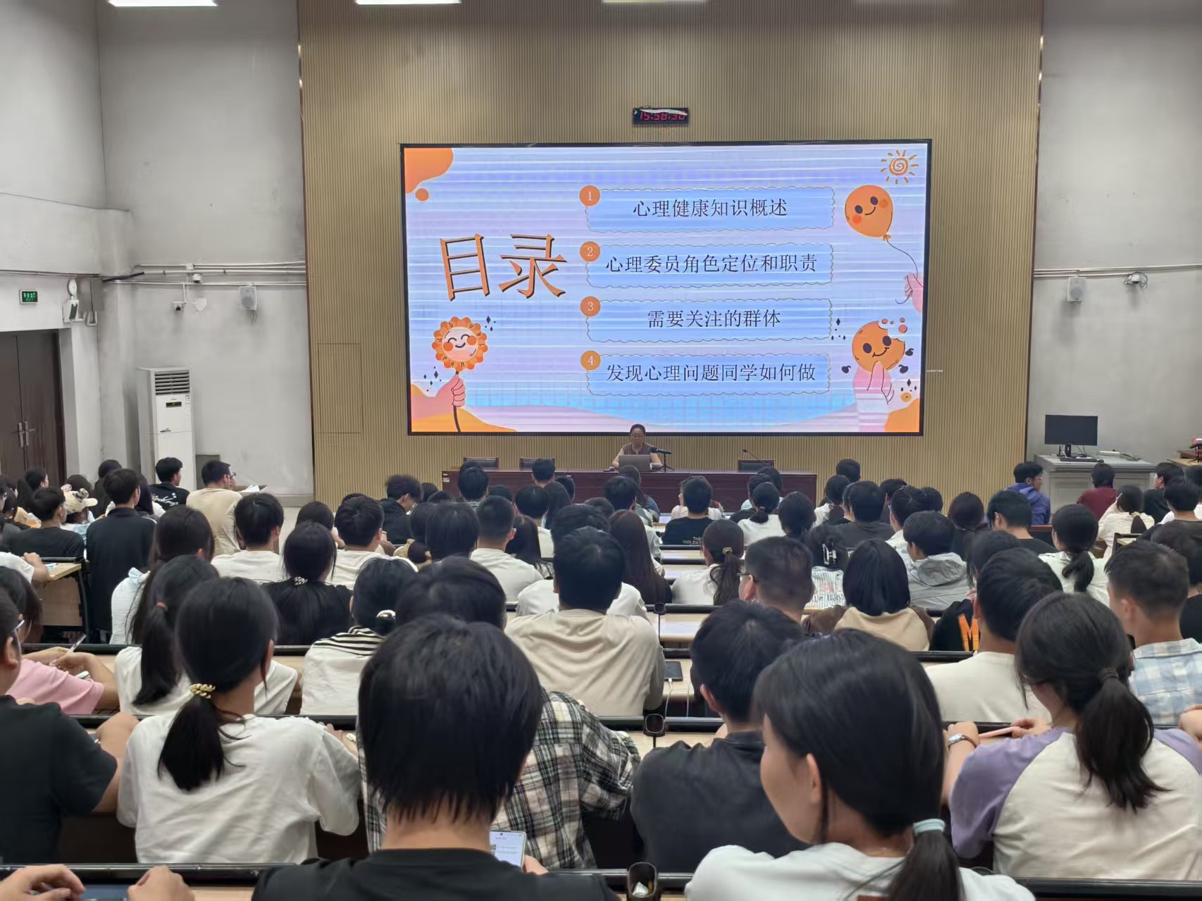 培训伊始,孙老师系统讲解心理健康的概念与标准,明确健康需涵盖生理、心理与社会适应能力三个层面,强调情绪稳定、人际和谐、适应力强等心理健康关键指标,为心理委员搭建基础认知框架。针对 “心理委员是‘间谍’”“需独自解决所有心理问题” 等常见误解,孙老师澄清心理委员的 “传声员”“排雷兵”“支持者” 三重角色,明确其职责是宣传心理知识、反馈同学需求、排查心理风险,而非独自承担咨询重任。