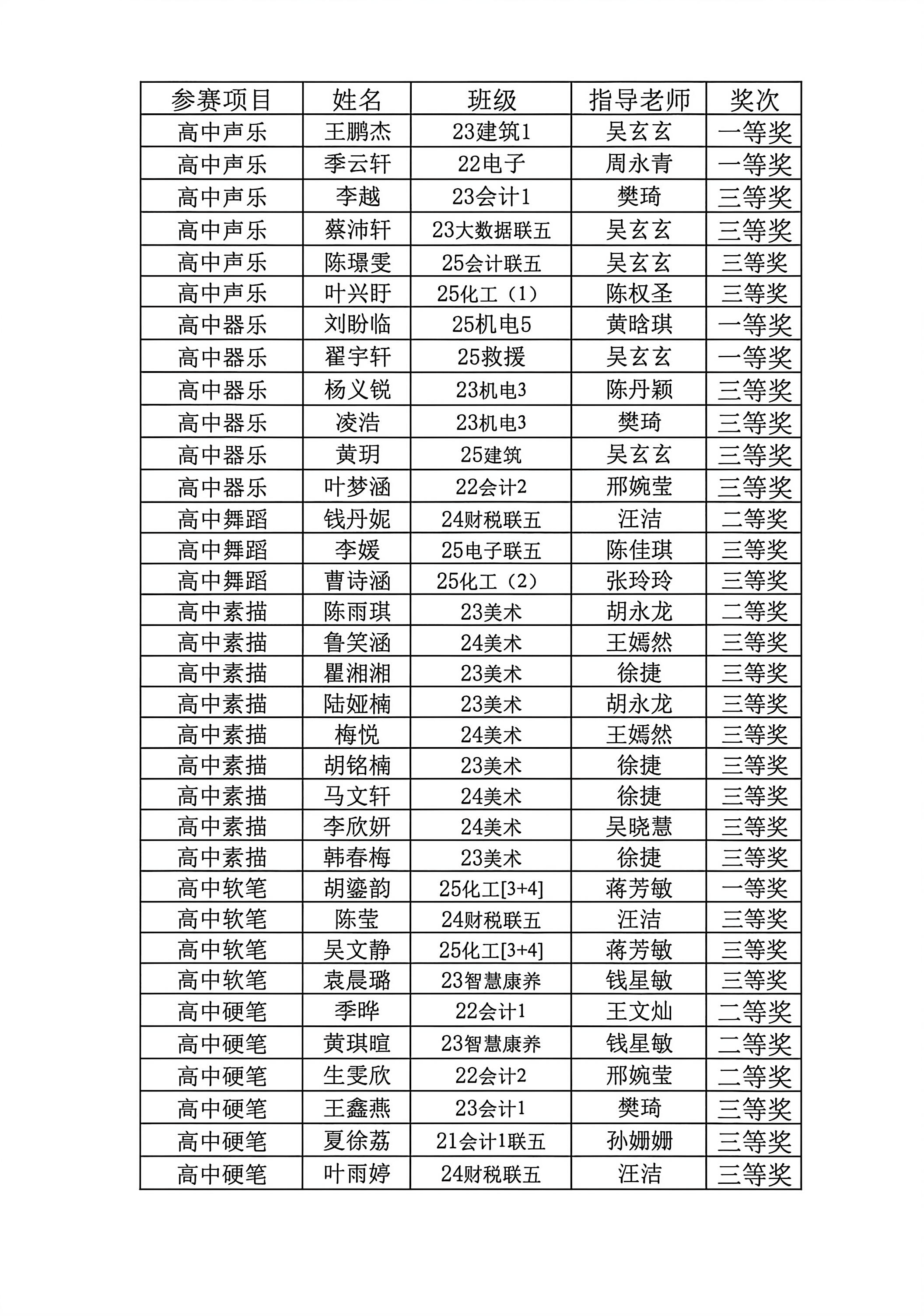 2025年青少年艺术单项获奖名单(学生组)