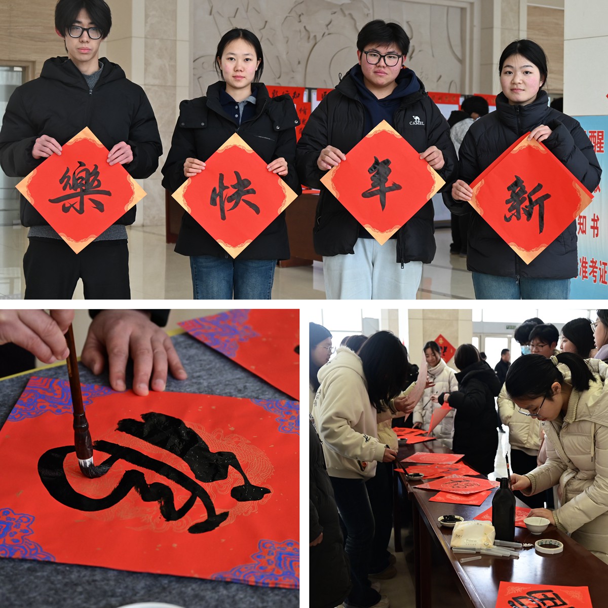 为传承中华优秀传统文化,营造喜庆祥和的新春氛围,1月20日上午9:30,我校团委精心策划的“师生共写春联送福字”活动在综合楼二楼大厅圆满举行。活动现场墨香四溢、暖意融融,老师们挥毫泼墨,同学们踊跃参与,用笔墨传递新春祝福,为校园增添了浓厚的年味儿。