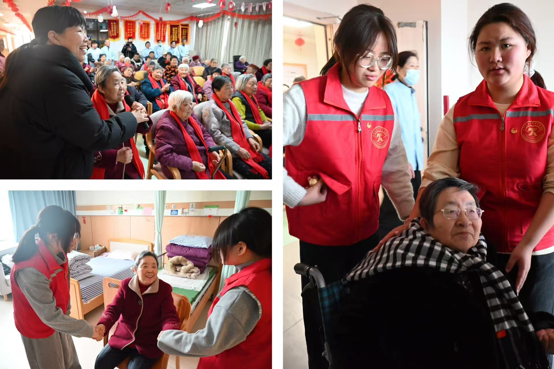 活动尾声,志愿者们贴心搀扶老人、推着轮椅,一路轻声叮嘱,将老人们安全送回房间,途中还不忘关切询问生活起居,用细致陪伴为此次爱心之行画上圆满句号。