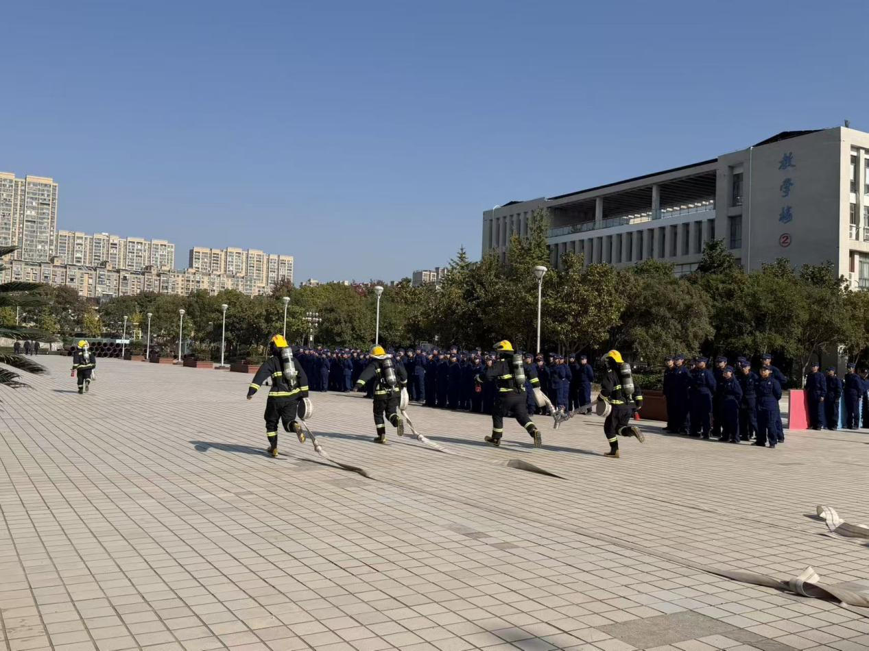 消防技能展示环节聚焦实战应用,场景感十足。学子们迅速响应,动作娴熟流畅、有条不紊。
