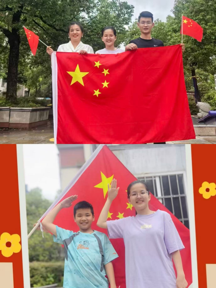有些同学还利用假期,与家人共同参与到这场深情告白中。一面国旗,串联起不同时代人的家国情怀。“和爸爸妈妈一起与国旗合影,让我更加懂得了什么是传承。”