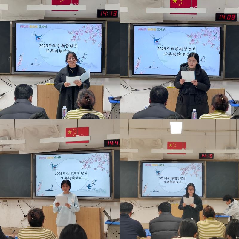为传承中华优秀传统文化,弘扬经典文学魅力,培育学生文化自信与人文素养,引导学生在经典诵读中汲取精神力量、促进全面成长,我系成功举办“诵经典 强自信 促成长”经典诵读活动。现将活动相关结果公布如下: