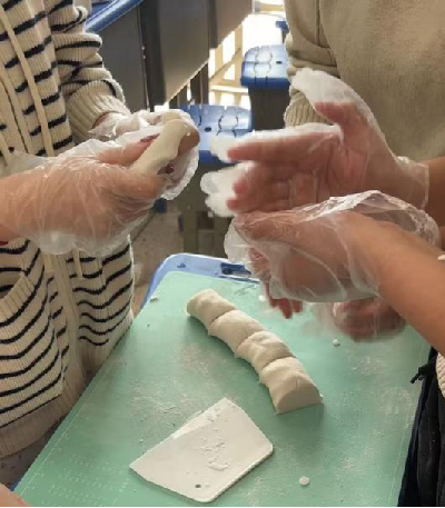 1 月 14 日至 16 日,揉面团及基础面点制作实训正式启动。作为烹饪专业的核心基础技能,也是酒店宴会面点服务的重要支撑,此次实训注重 “实操 + 协作” 双提升。烹饪班学生发挥专业优势,在教师指导下熟练演示揉面手法、水温控制、面团醒发等关键步骤,从 “三光(盆光、手光、面光)” 标准到醒发时间的精准把控,逐一细致拆解;酒店班学生则以 “服务场景需求” 为导向,在学习揉面技能的同时,重点关注面点造型设计、摆盘搭配与宴会适配性。跨专业小组分工协作,烹饪班学生负责面团制作与面点成型,酒店班学生参与创意造型与摆盘优化,共同完成水饺、花卷、鸡蛋饼等基础面点的制作。经过三天的反复练习,同学们不仅熟练掌握了揉面与面点制作技巧,更在协作中理解了 “烹饪技艺” 与 “酒店服务” 的衔接逻辑,让每一份面点既兼具口感与颜值,又贴合实际服务场景需求。