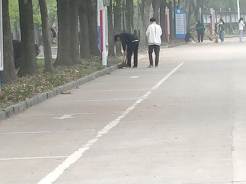 为培养我系学生热爱劳动的良好品质,为了让校园拥有更加美丽的环境,我系安排各班打扫了包干区,清扫包干区内的垃圾,为校园增添一份洁净。